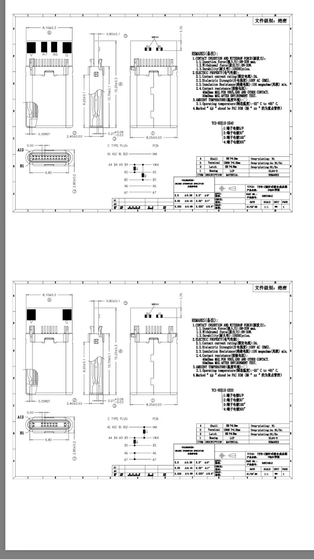 USB連接器3.1TYPE C公頭連接器24P 夾板0.8MM