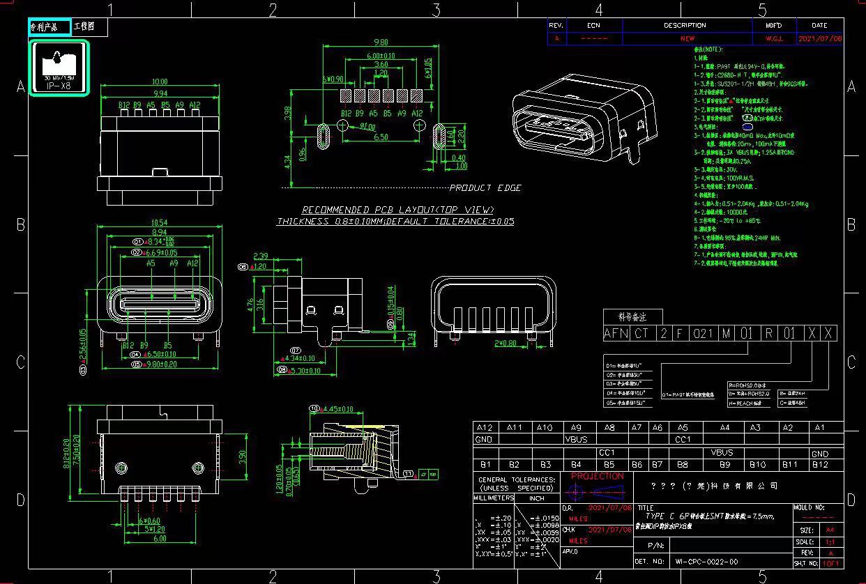usb連接器3.1 TYPE -C防水母座 2P/6P板上帶柱 2腳/4腳固定腳 防水級IPX8