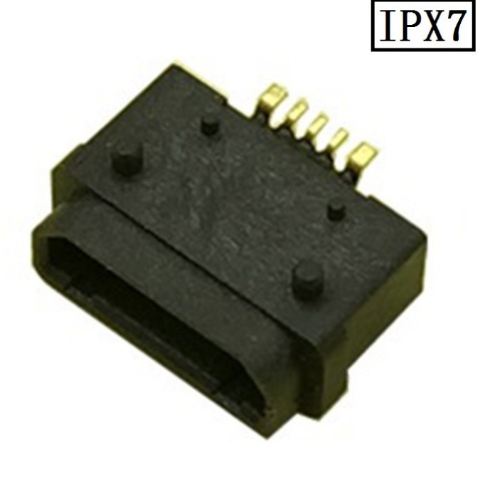 MICRO USB 5P防水母座 90度SMT 全貼 4個柱子 無腳