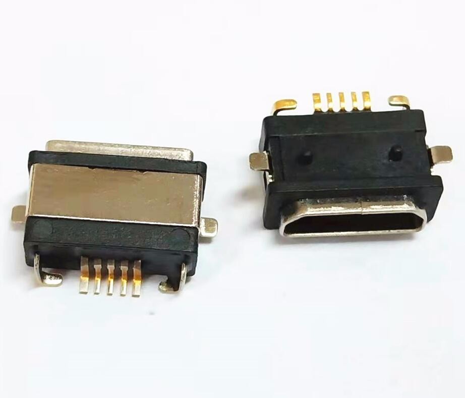 MICRO USB 5P防水母座 板上四腳全貼 大電流母座 有柱