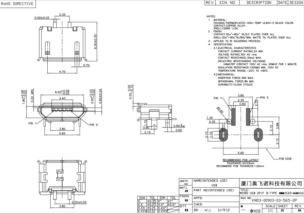 MICRO USB 5P母座 2P寬腳大電流母座 5.655.96.4插腳有柱卷邊