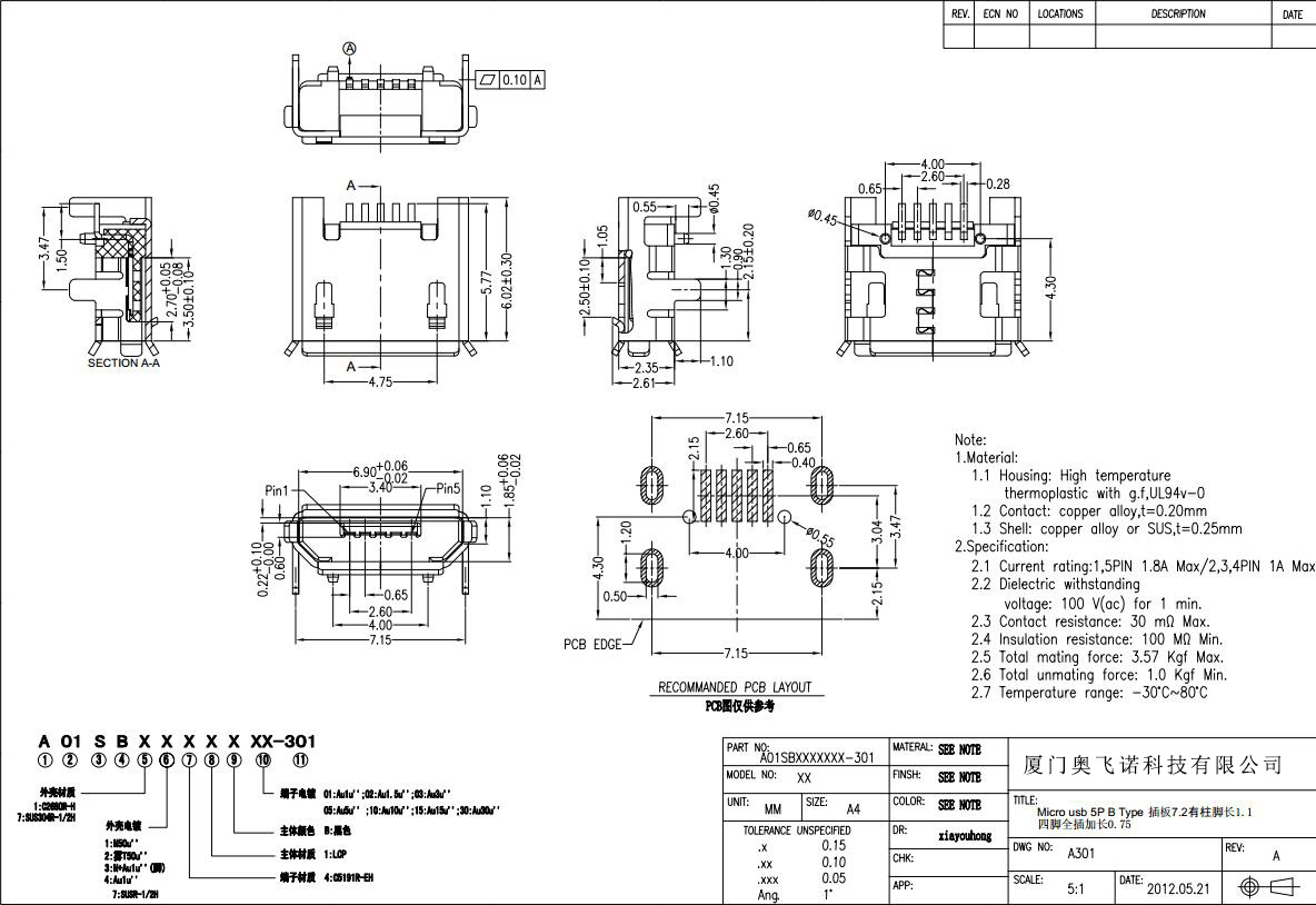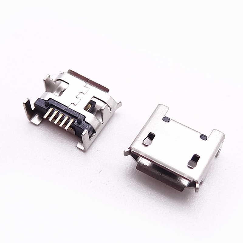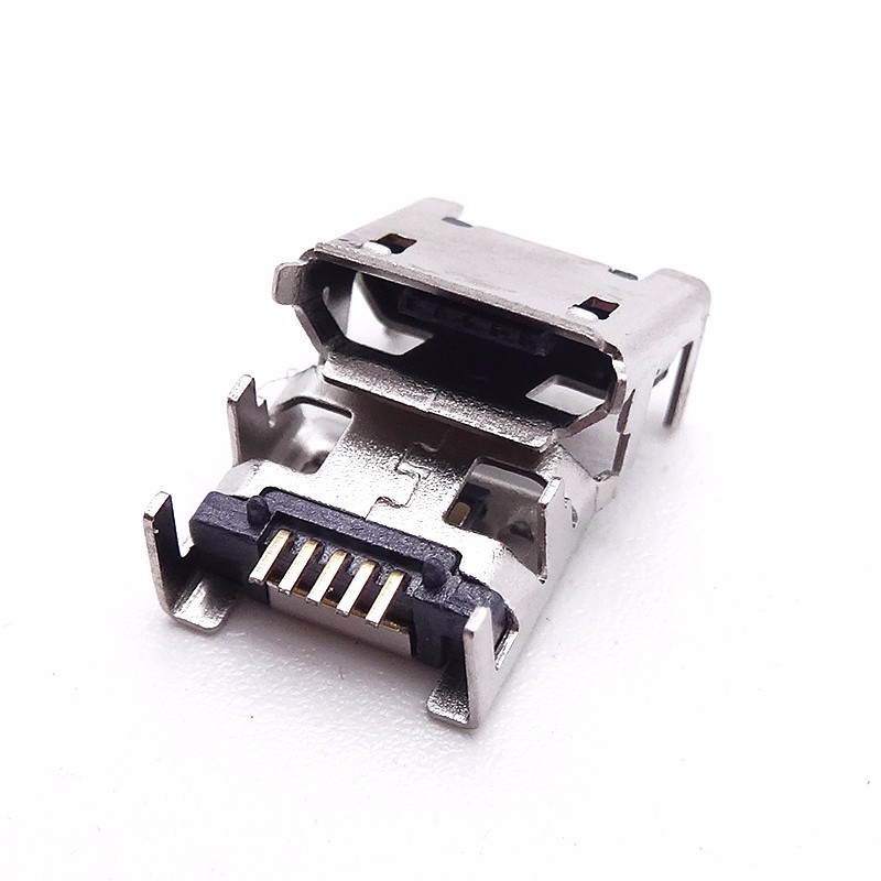 MICRO USB 5P母座 7.2四腳插板 針加長0.75 有柱卷邊