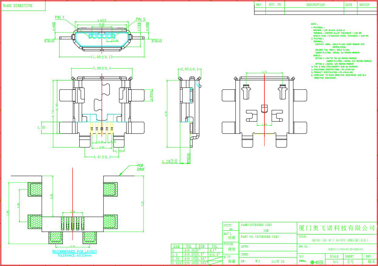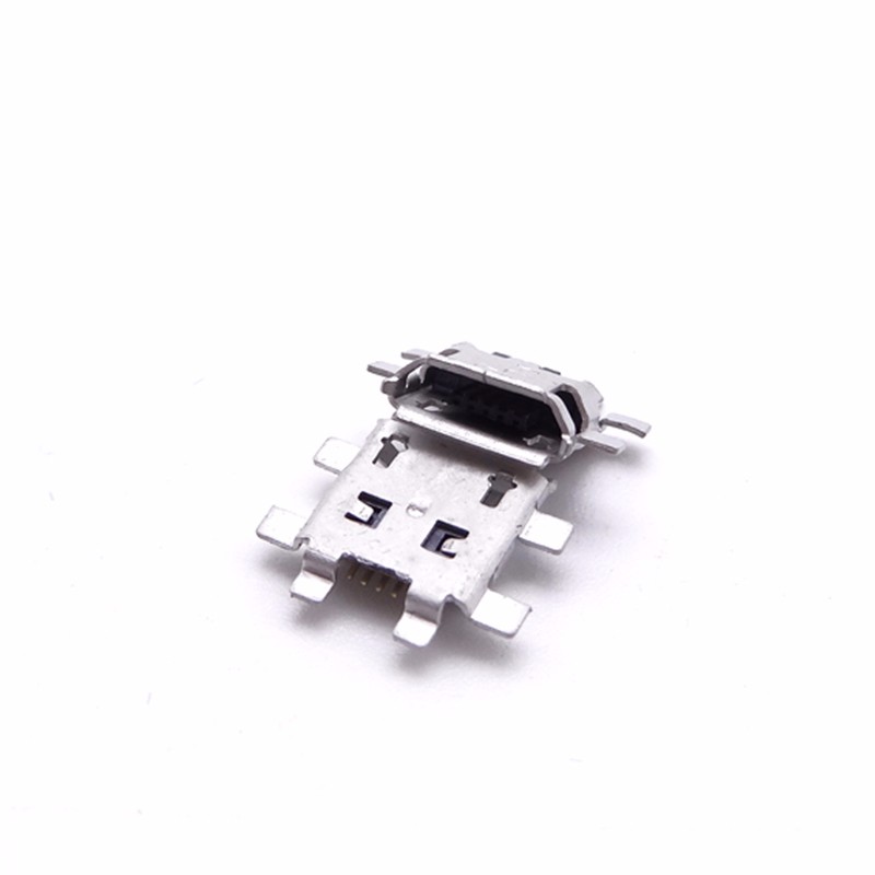 MICRO USB 5P母座 沉板1.3 SMT六腳全貼 卷邊 無(wú)孔
