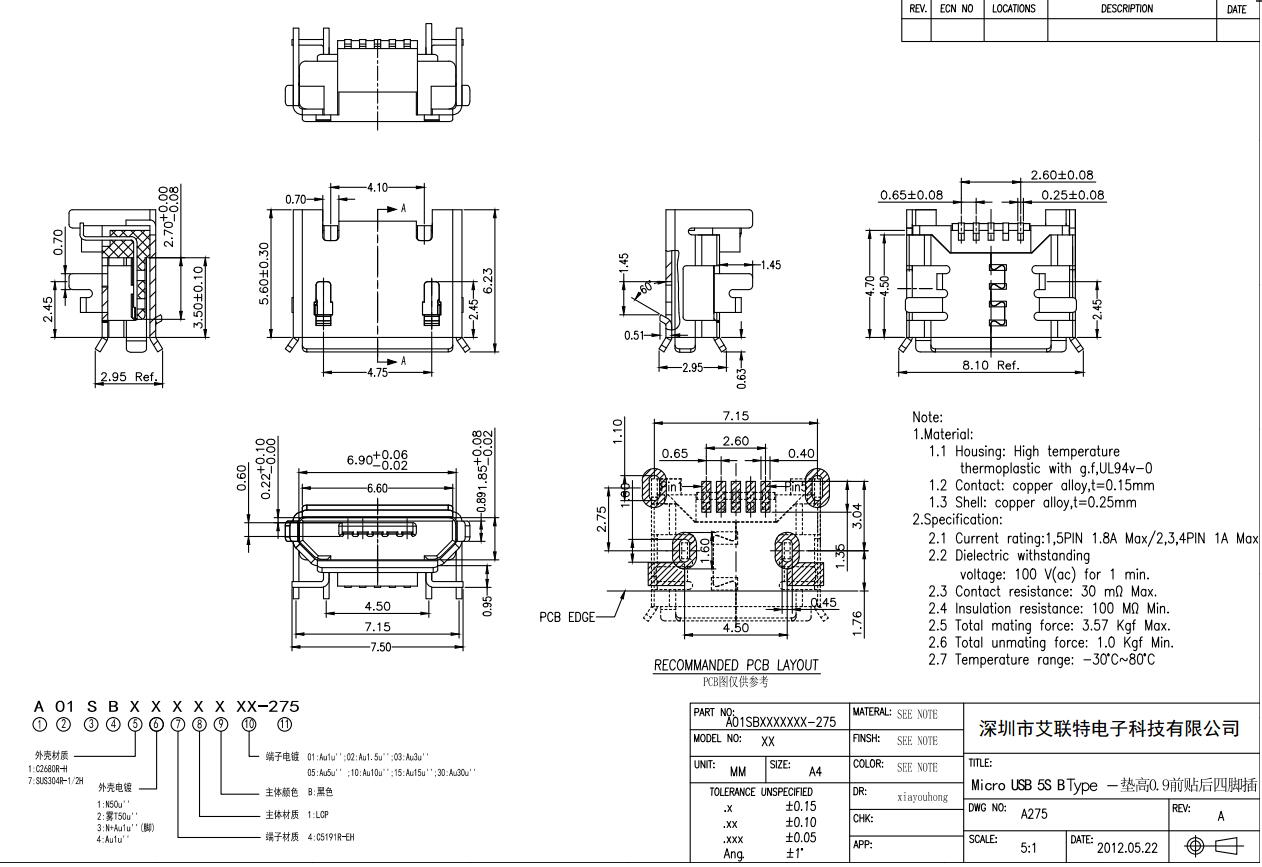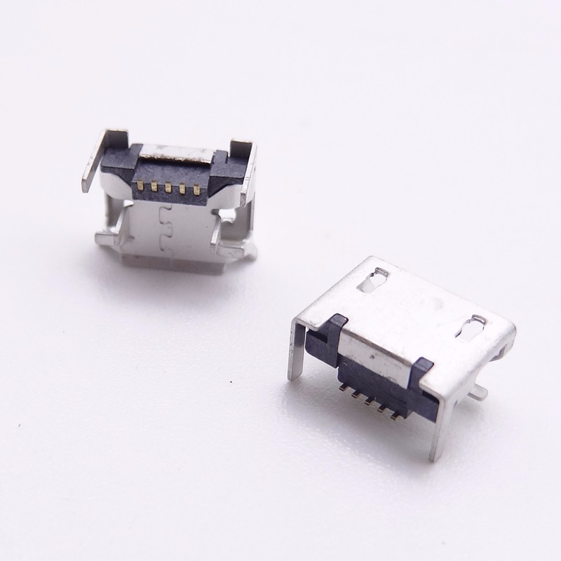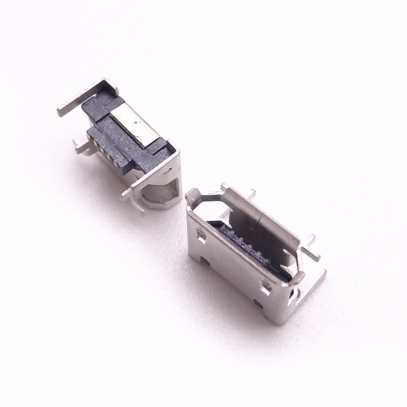 MICRO USB 5P母座 墊高0.9 前貼后四腳插板 卷邊直邊