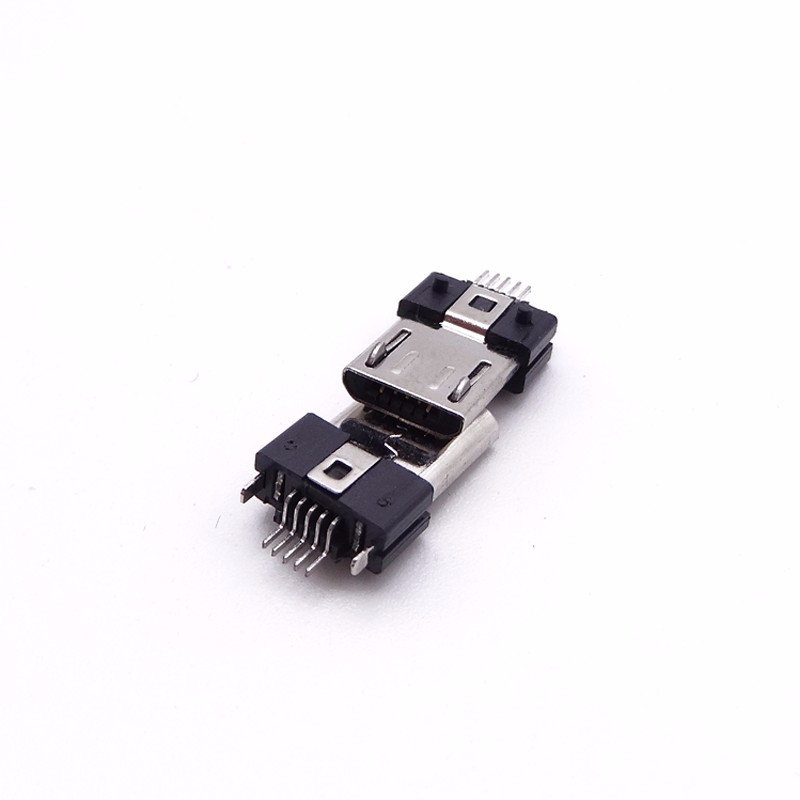 MICRO USB 5P公頭 180度插腳針SMT 貼片 帶柱 B型