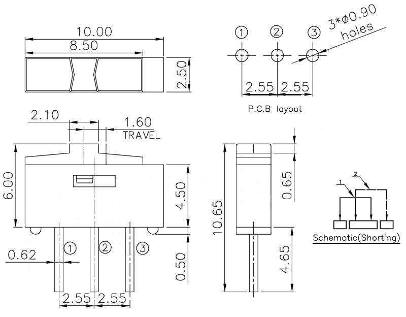 撥動(dòng)開(kāi)關(guān) K3-1204D 180度立式3腳插板 滑動(dòng)式