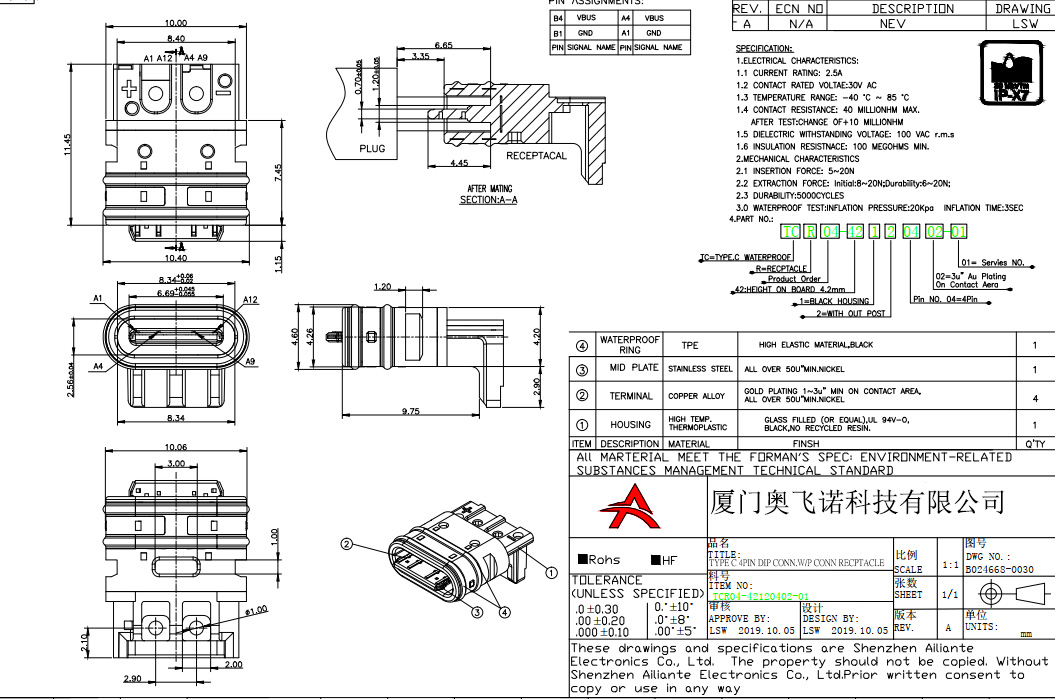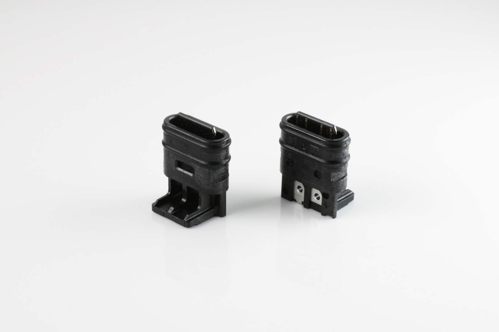 TYPE C 4P防水母座 180度焊線式帶鋼片 單面端子 舌片外露