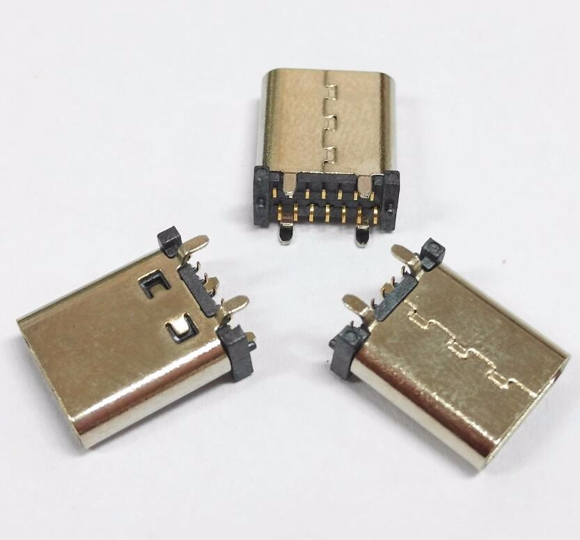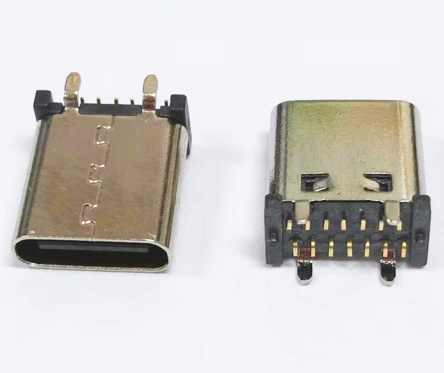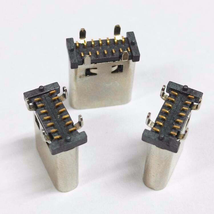 TYPE C 14P母座 180度立貼 四腳插板 直立式貼片 有柱