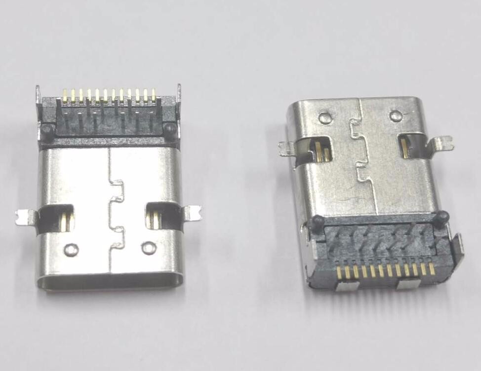 TYPE C 24P母座 板上前貼后插 L=11.95長 針前插后貼 有柱