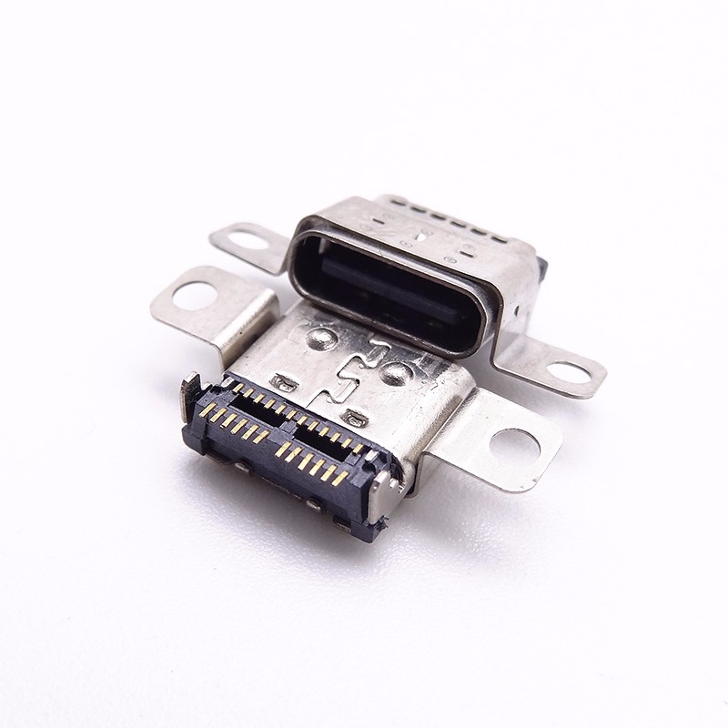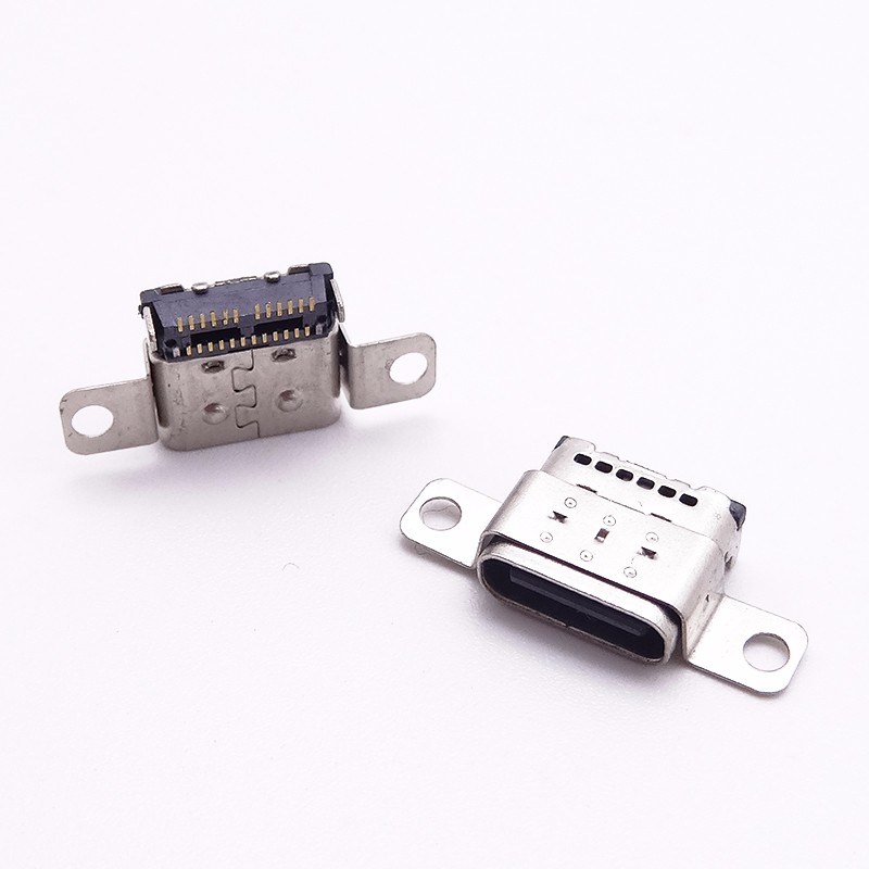 TYPE C 24P母座 板上四腳雙排針貼片 雙殼帶螺孔