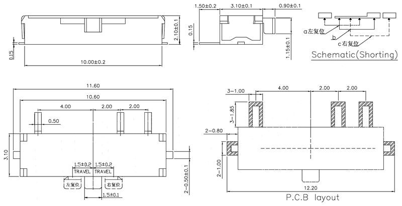 撥動(dòng)開(kāi)關(guān) K3-1392M-G1 臥式五腳小撥動(dòng)貼片 帶復(fù)位