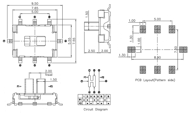 撥動(dòng)開(kāi)關(guān) K3-2276S 180度立式八腳貼片 立撥兩擋