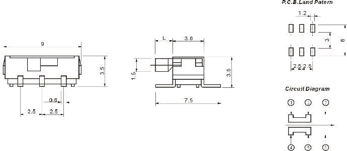 撥動(dòng)開關(guān) SS-1245S 臥式六腳貼片側(cè)撥 兩擋