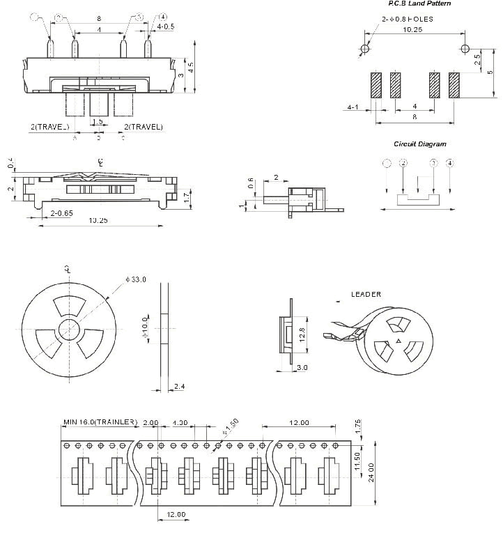 撥動(dòng)開(kāi)關(guān) SS-1312B 立式四腳貼片 三擋 前兩腳插板