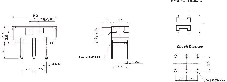 撥動(dòng)開關(guān) SS-2245 90度側(cè)撥 六腳插板 2P3T