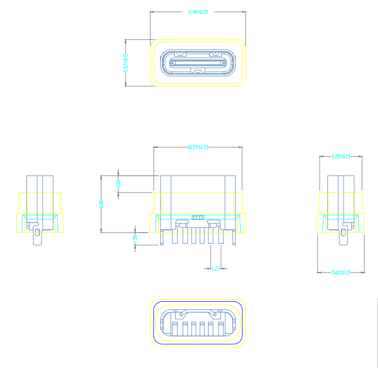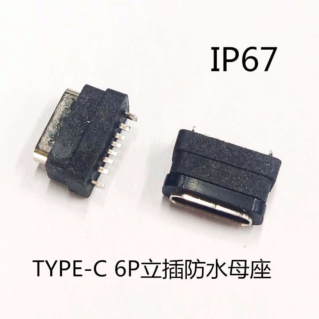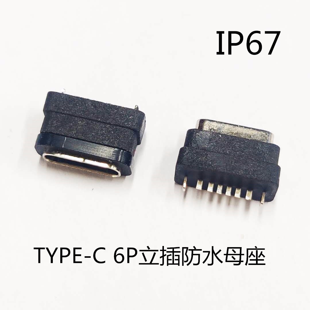 TYPE C 6P防水母座 180度直插短體兩腳 全塑帶防水圈 點膠