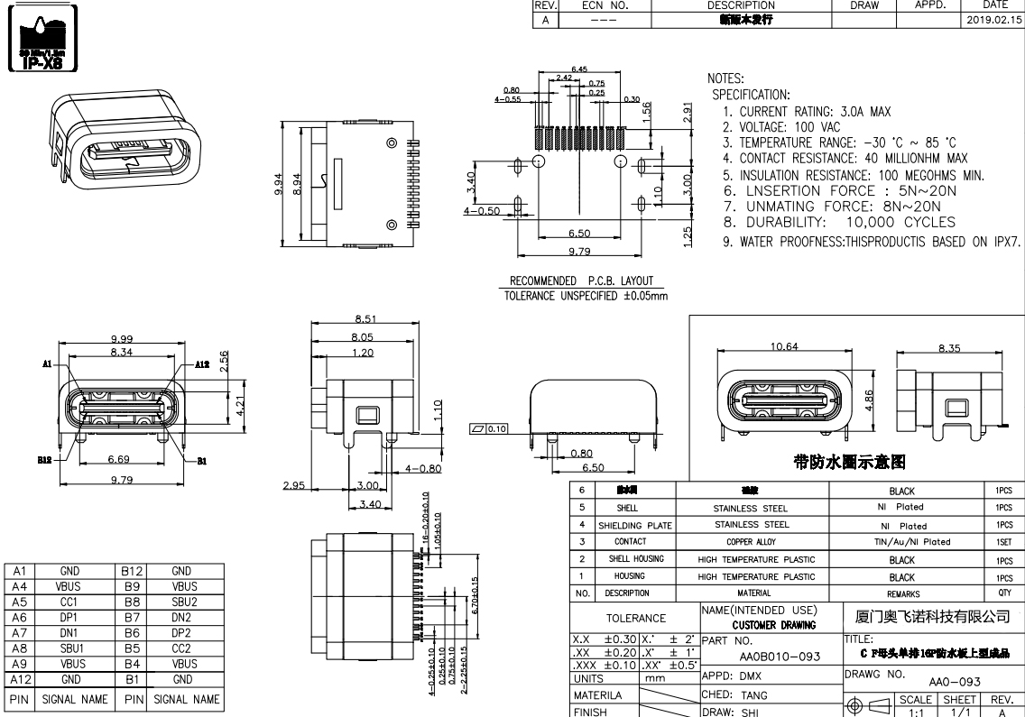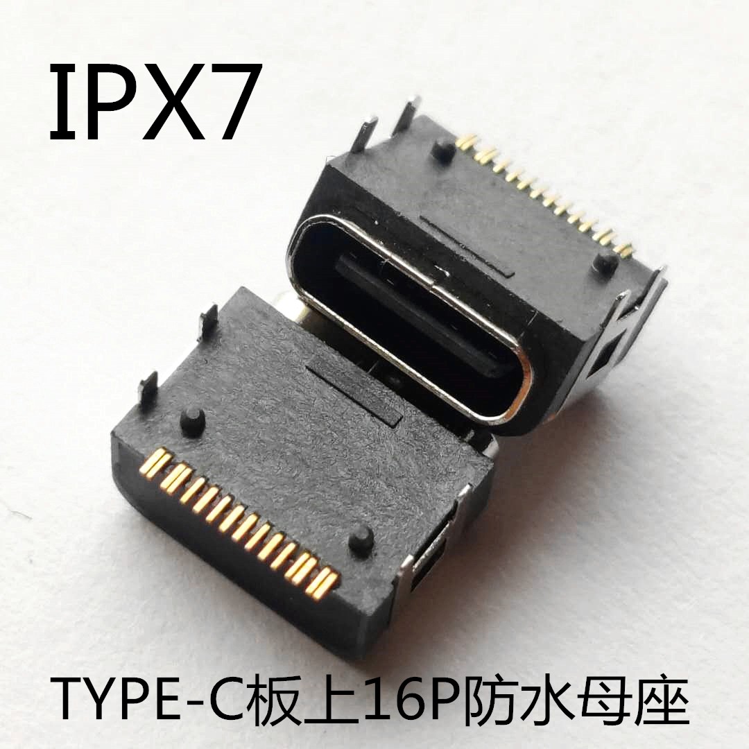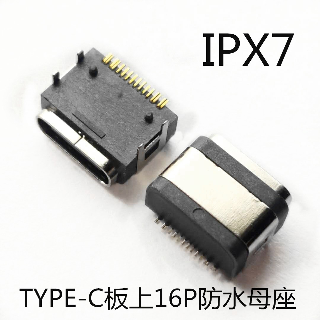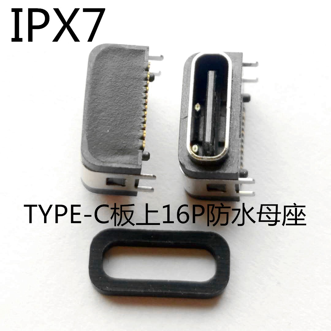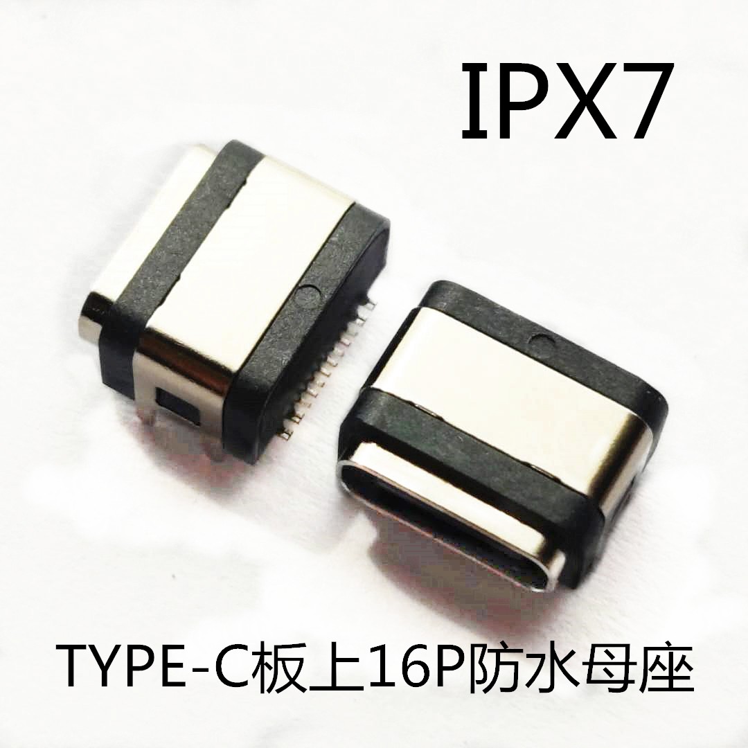 TYPE C 16P防水母座 板上四腳插板有柱 單排針貼片 防水IPX7級(jí) 帶防水膠圈