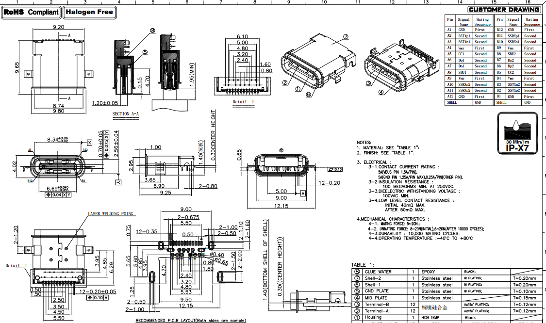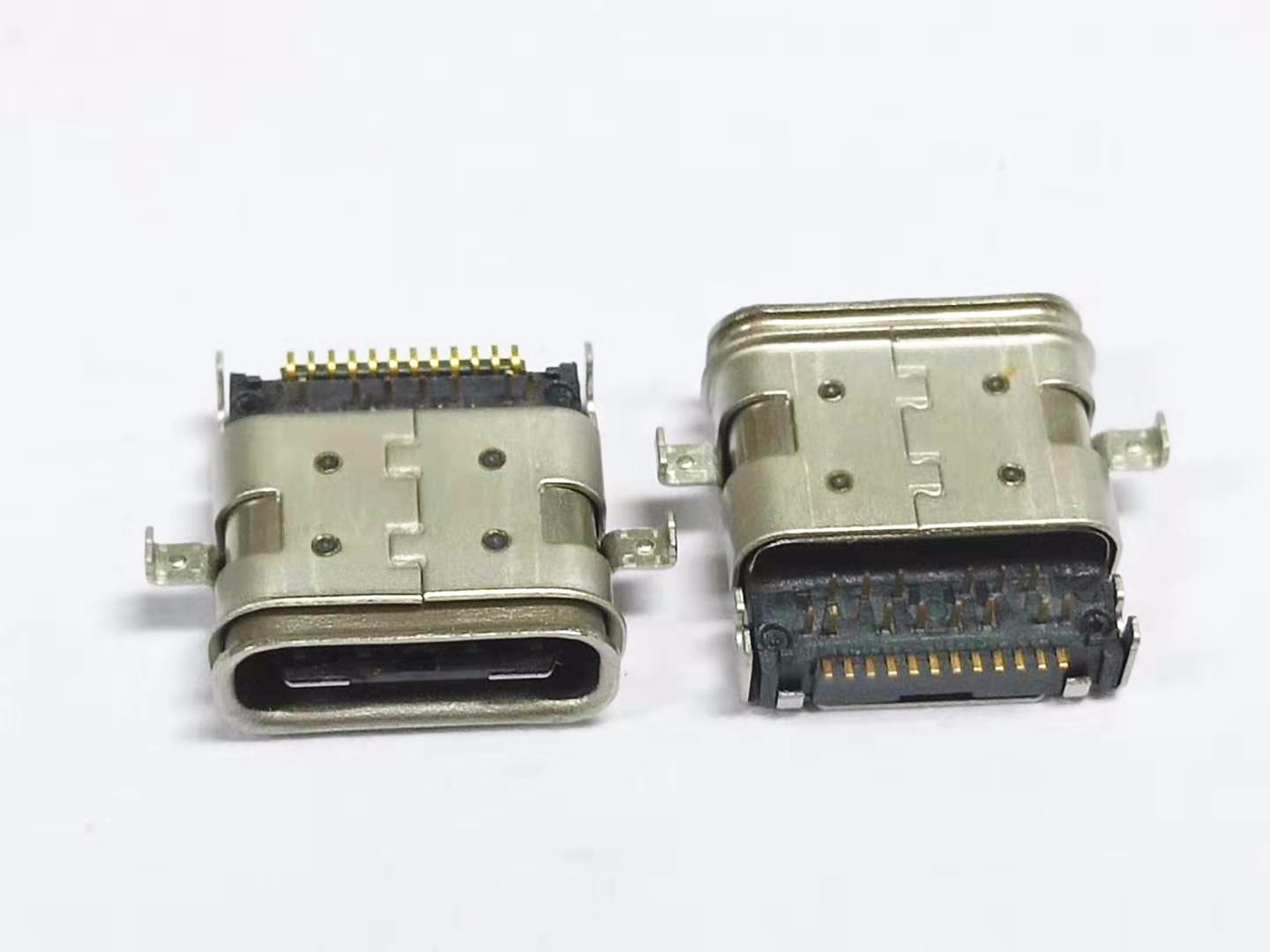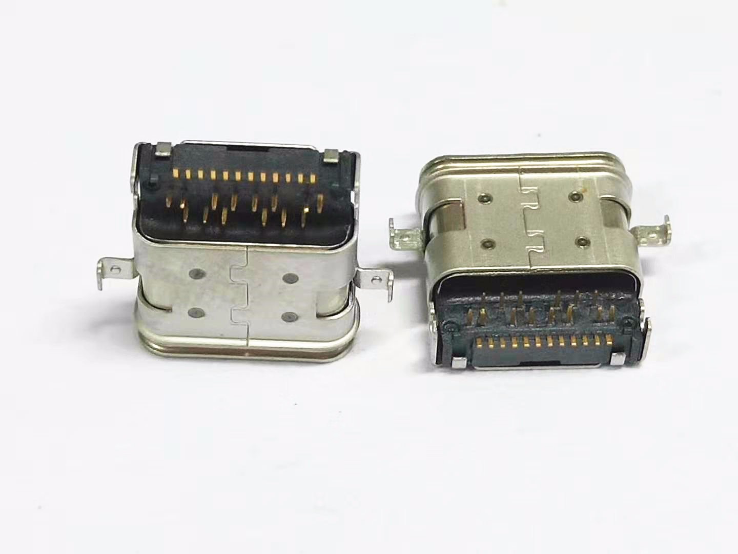 TYPE C 24P母座 沉板前插后貼 雙殼卷邊 帶凸包