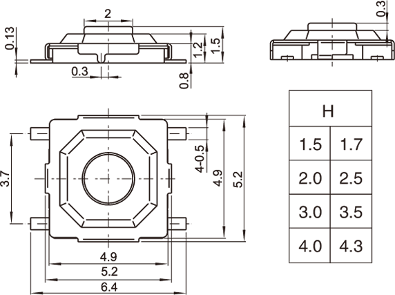 輕觸開(kāi)關(guān) 4x4x3.03.54.04.3H 貼片正按 銅頭TS-C010