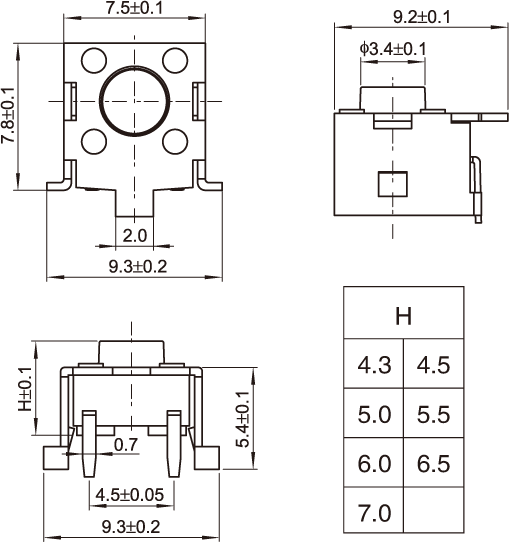 輕觸開關(guān) 6x6x6.06.57.0H 側(cè)按 前插后貼 TS-D018