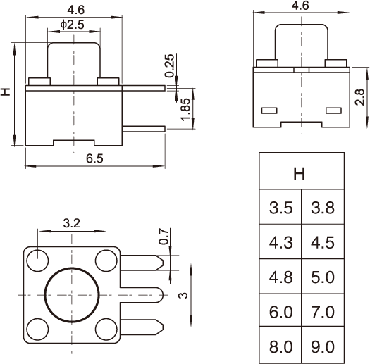 輕觸開關(guān) 4.5x4.5x3.5~4.8H 邊三腳正按 TS-C017
