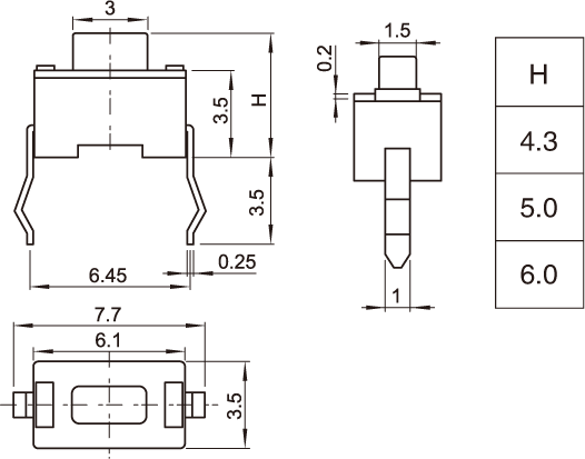 輕觸開關(guān) 3x6x4.3H-250G 正按插腳 TS-B011