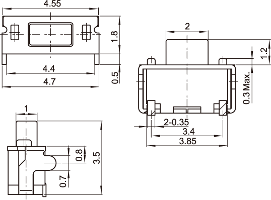 輕觸開關(guān) 2x4x3.5H 小側(cè)按 前插后貼 TS-A004