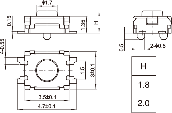 輕觸開關(guān) 3x3x1.82.0H 貼片正按 250G力度 TS-A008