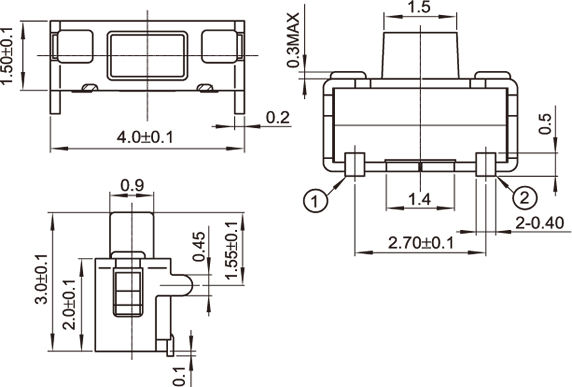 輕觸開關(guān) 2x4x3.0H 側(cè)按貼片帶插腳 TS-A022