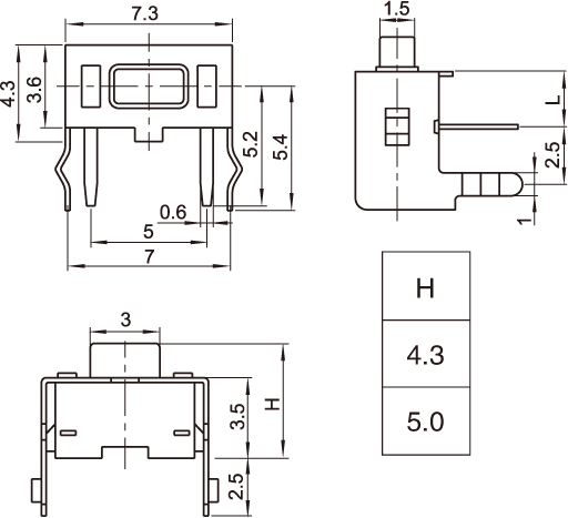輕觸開關(guān) 3x6x4.35.0H 側(cè)按 帶支架 TS-B004