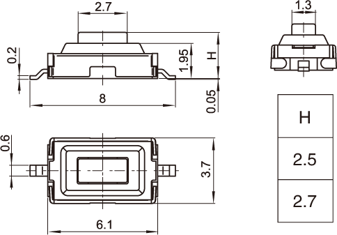 輕觸開關(guān) 3x6x2.7H-250G力度 正按貼片 TS-B005