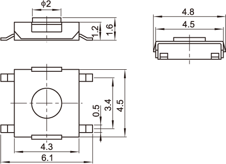輕觸開(kāi)關(guān) 4.5x4.5x1.6H 四腳貼片 正按 圓形按鍵 TS-C013