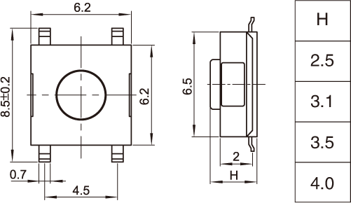 123 輕觸開(kāi)關(guān) 6.2x6.2x2.53.13.54.0H 貼片正按 紅色硅膠按鍵開(kāi)關(guān) TS-E004
