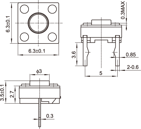 輕觸開關(guān) 6.2x6.2x3.5H 二DV腳直插 TS-E012