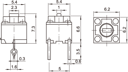 輕觸開關(guān) 6.2x6.2x7.3H 二DV中兩腳插板 TS-E010