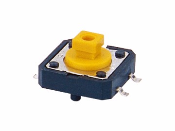 輕觸開關(guān) 12x12x7.3H 四腳貼片 有柱 黃柄 可帶按鍵帽 TS-F006