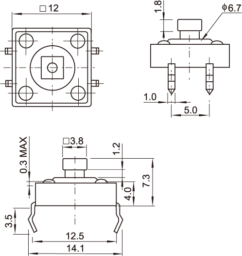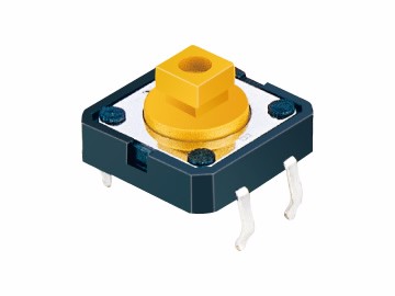 輕觸開關(guān) 12x12x7.3H 四腳插板無柱 黃柄可帶按鍵帽 TS-F005
