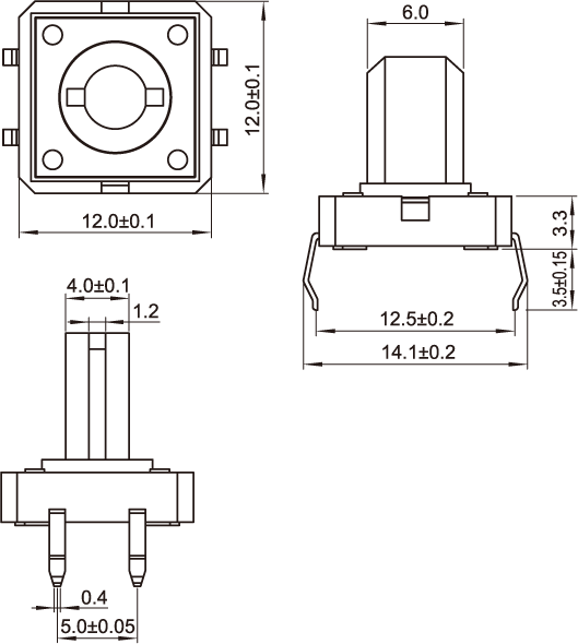 輕觸開關(guān) 12x12 四腳插板 無柱 十字柄 TS-F004