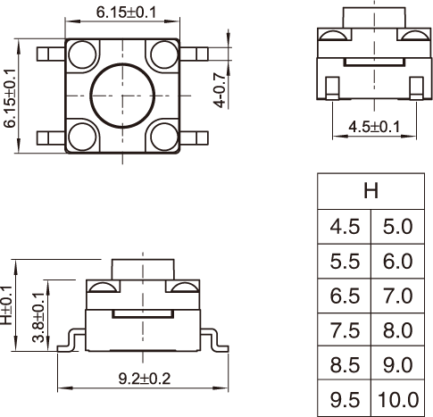 輕觸開關(guān) 防水開關(guān)6x6x4.5H~10.0H多種高度 四腳全貼 TS-G002