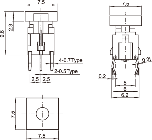 帶燈按鍵開關(guān) 6x6x9.6H帶燈 六腳插板 白蓋TS-H606