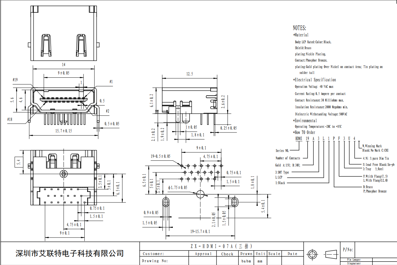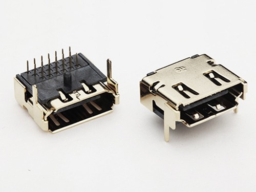 HDMI A型19P母座 90度板上前兩腳+三排針插板 有柱