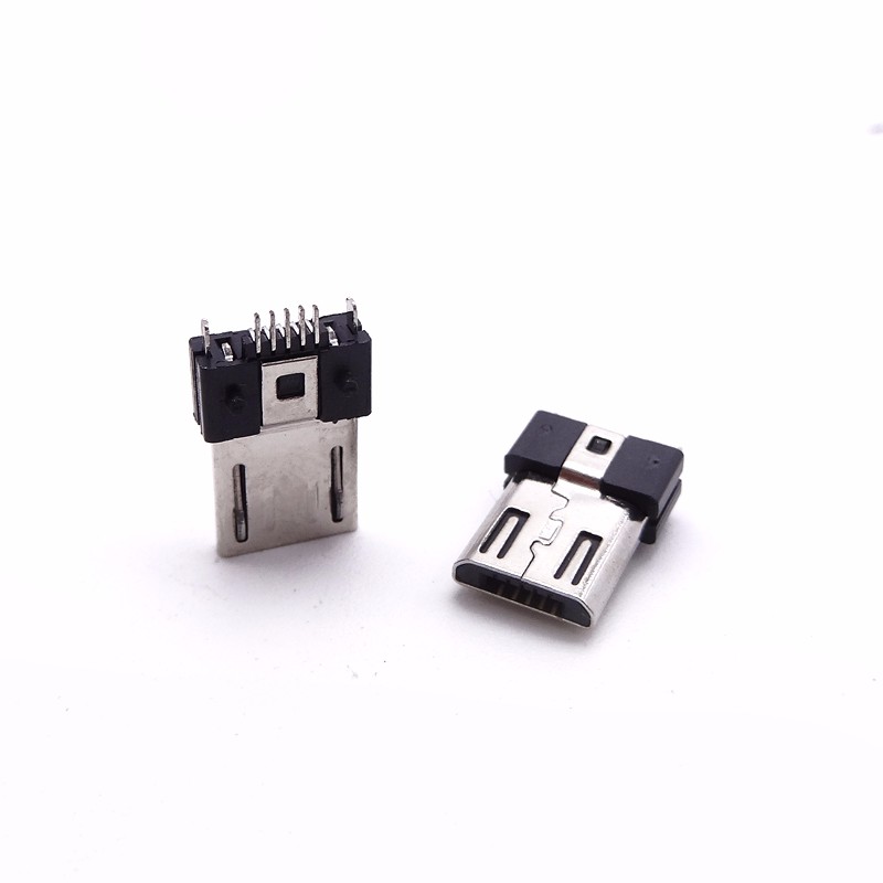 MICRO USB 5P公頭 180度插腳針SMT 貼片 帶柱 B型