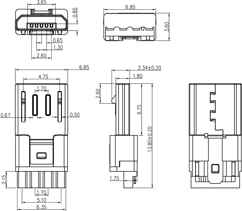 MICRO USB 5P公頭 短體焊線式 前五后四 帶卡勾