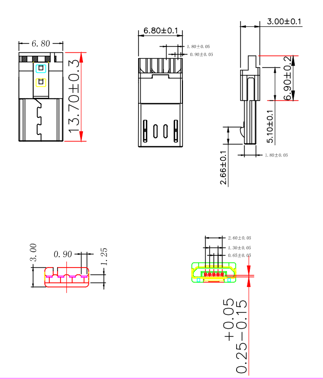 MICRO USB公頭 B型焊線式公頭 3.0超薄 前五后四 4-5短路