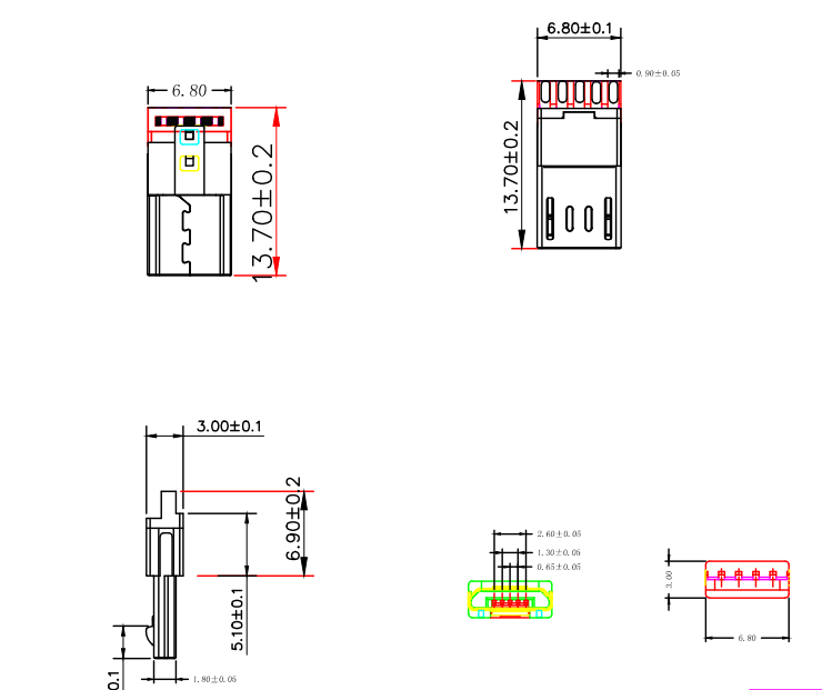 MICRO USB公頭 B型焊線式公頭 超薄3.0 前五后五