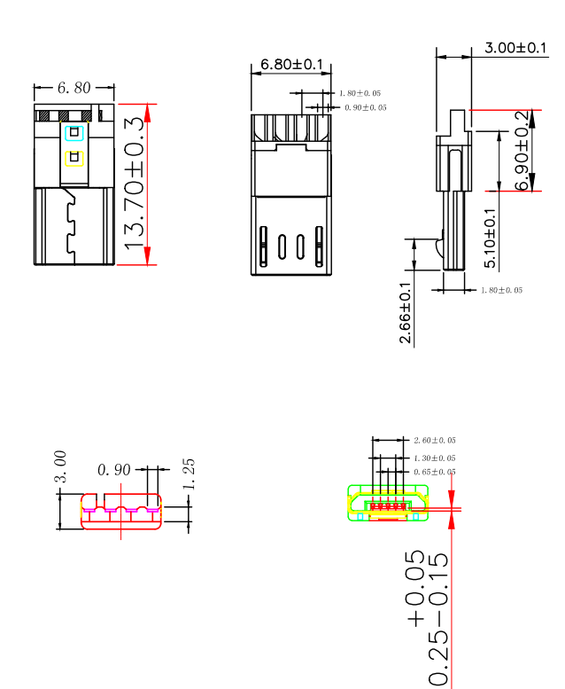 MICRO USB公頭 B型焊線式公頭3.0款 前五后四 4-5P短路 白膠