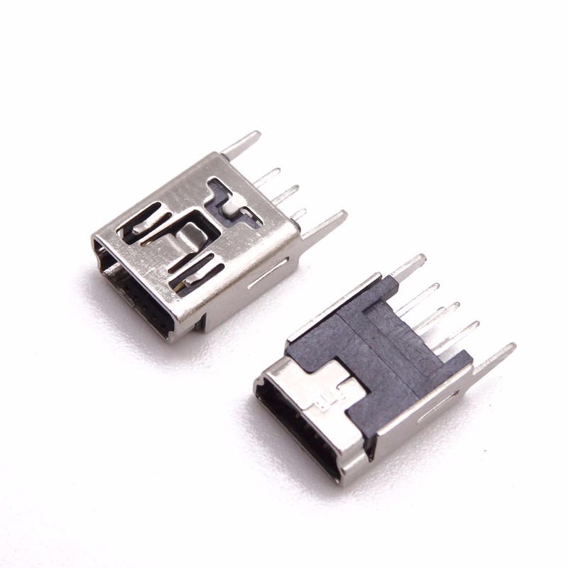 MINI USB 5P母座 180度直插 直腳 黑膠