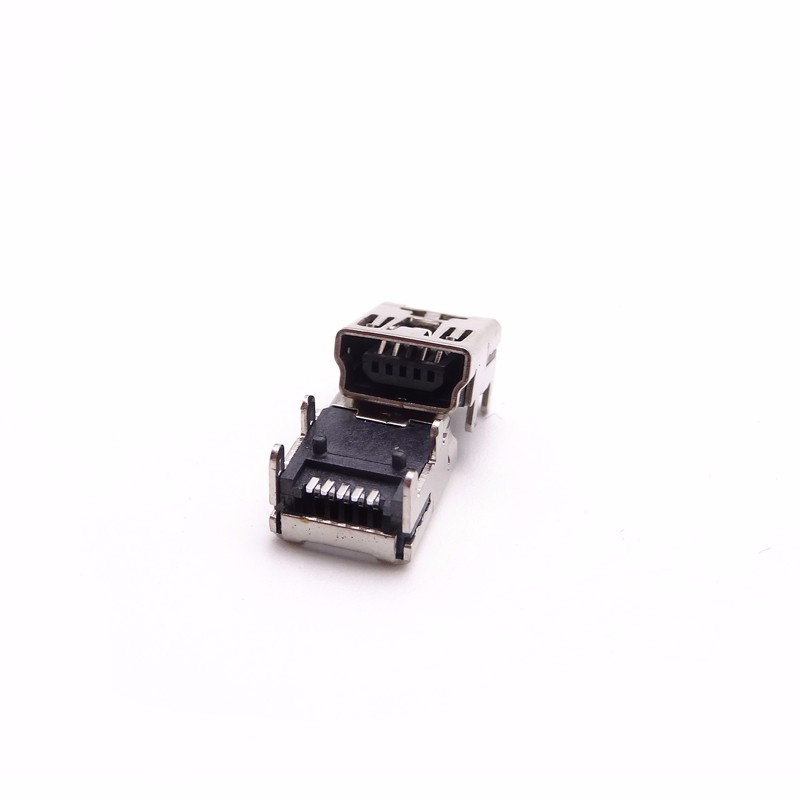 MINI USB 5P母座 B型板上四腳全插 針貼片 前插后貼