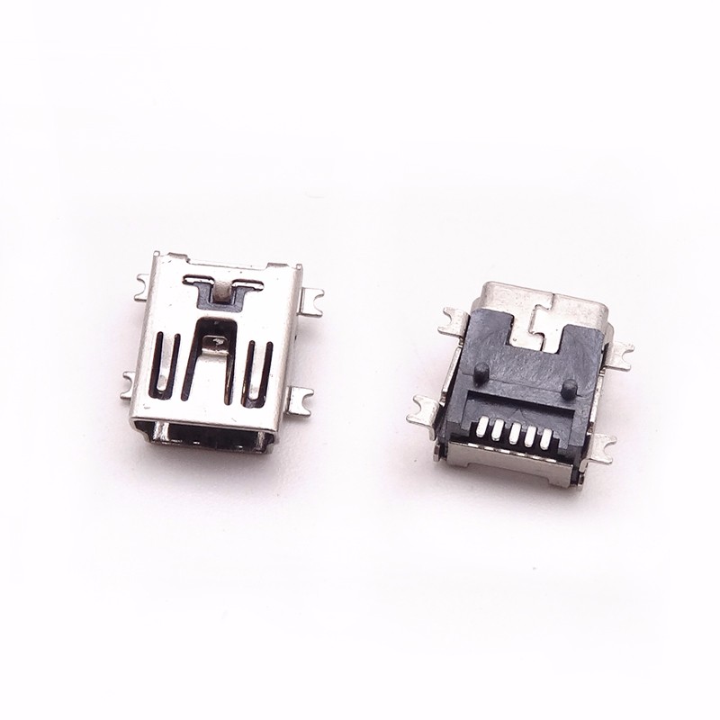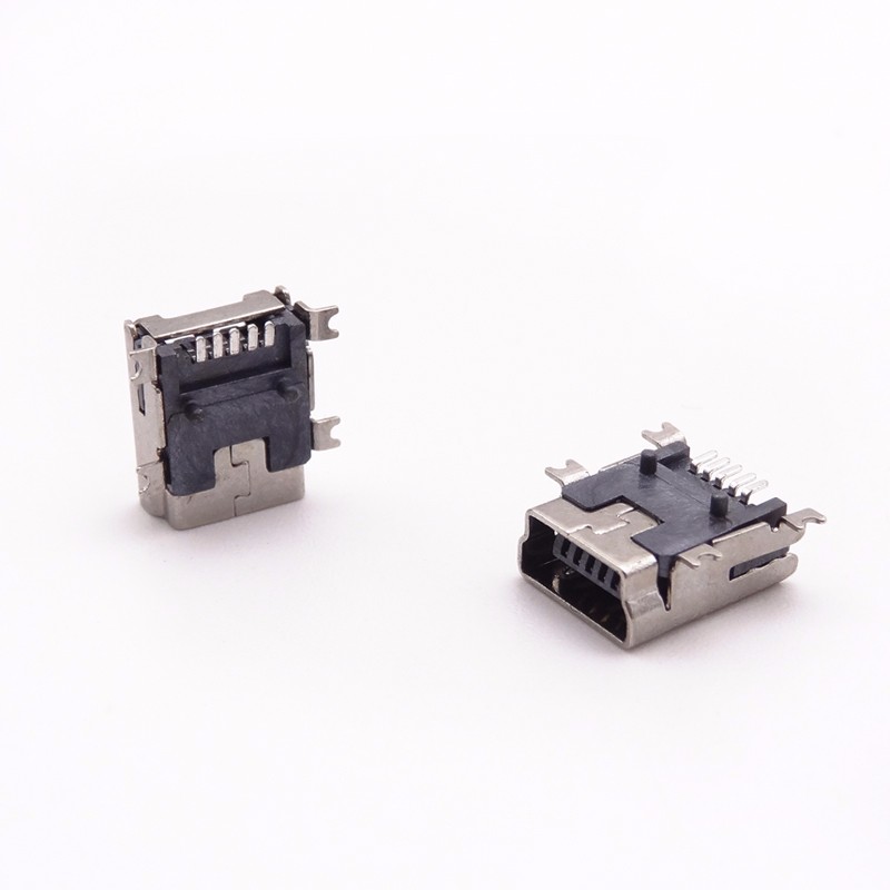 MINI USB 5P母座 B型板上四腳全貼母座 有柱