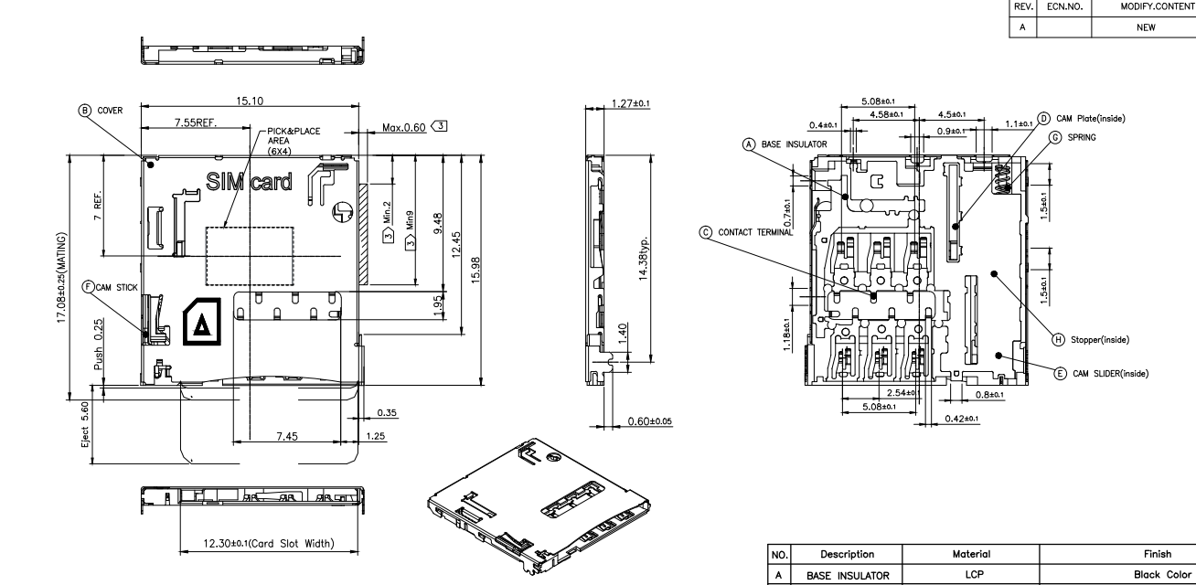 MICRO SIM 6P卡座 臥式兩腳插板 帶彈